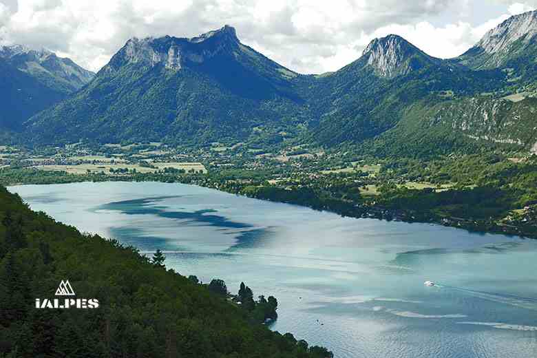 D’une longueur de 12 km et allant de 800 à 3,2 km de large, le lac se présente en deux parties, le Grand-Lac qui s’étend d’Annecy à une ligne imaginaire à la hauteur de Duingt, et le Petit-Lac en partant de cette même ligne à la Réserve naturelle du Bout du Lac.
